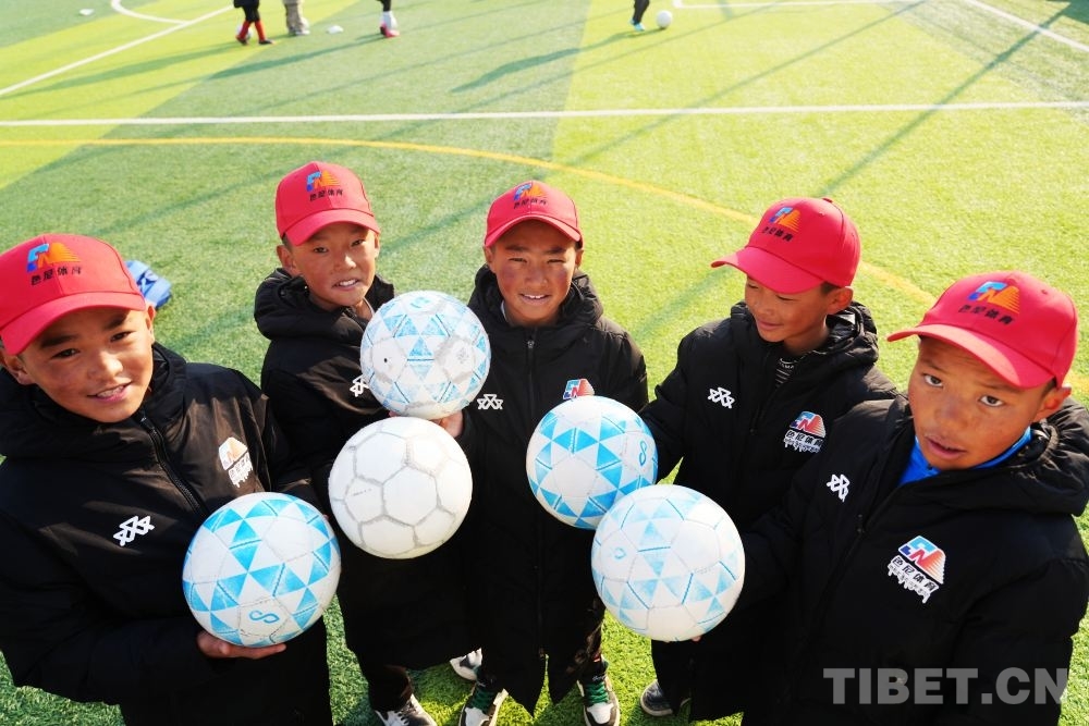 盡管正值寒冬,西藏的足球少年們已經(jīng)迫不及待地換上球服開始跑動熱身。帶隊教練和球員們圍成圓圈,團抱在一起,大喊加油!