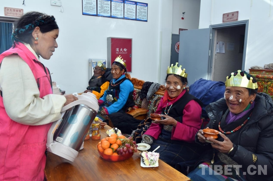 中國西藏網(wǎng)訊 冬日的暖陽透過玻璃窗,灑進西藏日喀則定結(jié)縣郭加鄉(xiāng)切村幸福院。老人們圍坐在色彩絢麗的卡墊上,手捧甜茶,一同慶祝集體生日。溫暖的光線下,每張臉上,都洋溢著安寧而滿足的笑容。這座由村級閑置房屋改造而成的院落,如今已成為村里65位老人共同的“家”?! ?/p>