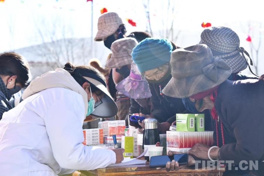 圖為拉孜縣錫欽鄉(xiāng)“村晚”現(xiàn)場,醫(yī)生正在為村民們義診。攝影:趙振宇