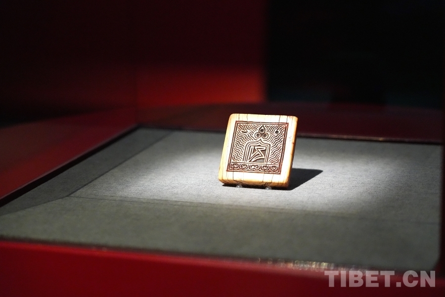 圖為現(xiàn)場(chǎng)展出的“薩”字印,此印為元代西藏薩迦地方官員的印章 攝影:王妍丹