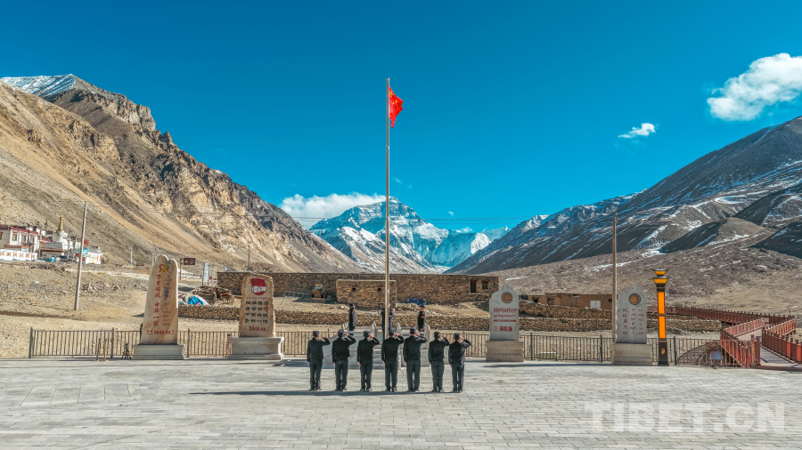 海拔5200米的珠峰大本營廣場上,西藏邊檢總站日喀則邊境管理支隊(duì)珠峰邊境派出所全體民警整齊列隊(duì)。高原的風(fēng)掠過雪山,揚(yáng)起深色制服的衣角。