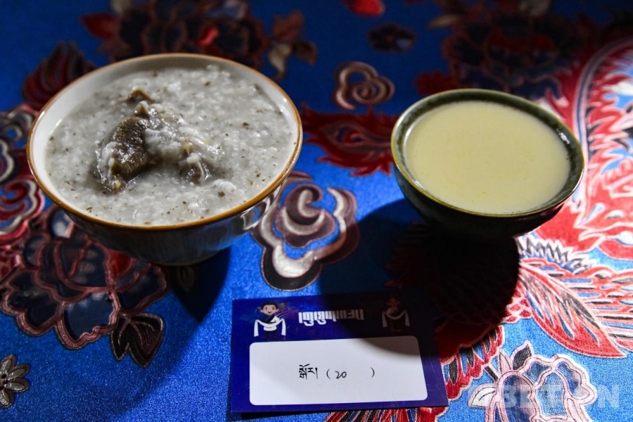 在美朵卓瑪家的客廳里,熱氣騰騰的古突粥香氣四溢。與拉薩地區(qū)常見的面疙瘩古突不同,阿里的古突是用青稞和其他五谷熬制成的“粥”,再加入大塊的牦牛肉,別具風味。而最具特色的是“抽獎”環(huán)節(jié)——由于粥狀的古突無法包裹餡料,村民們便將寫有不同祝福寓意的紙條放入盒中,以抽簽的方式?jīng)Q定新年的“運勢”。