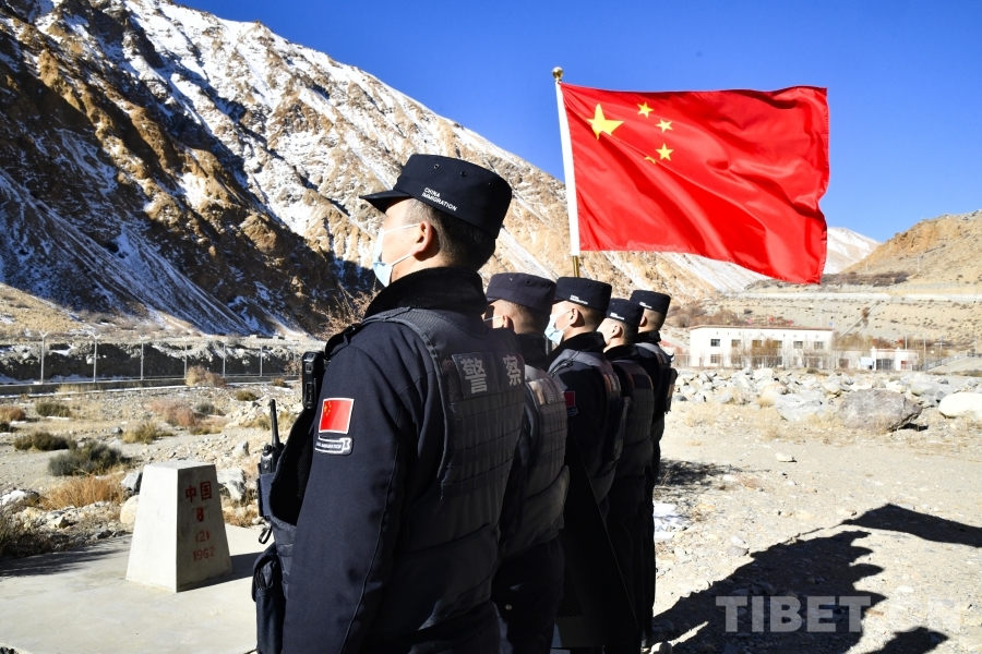 上午11時(shí),凜冽的寒風(fēng)中,5名移民管理警察整裝待發(fā)。他們從普蘭口岸國(guó)門出發(fā),朝著中尼界樁的方向,踏上了巡邏之路。