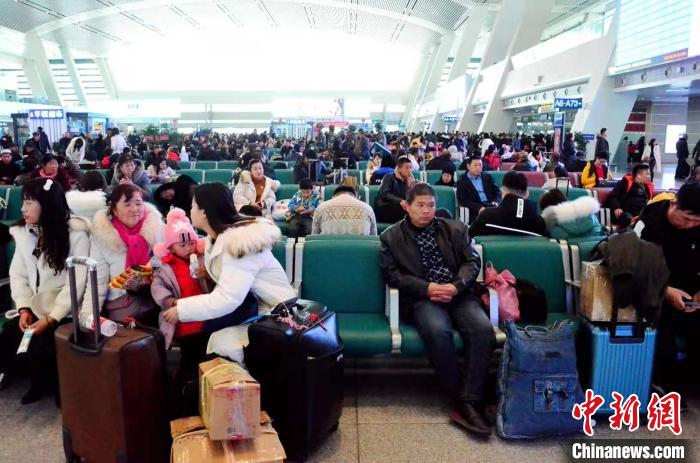 圖為在候車廳候車的趙發(fā)清一家。(左下角為趙發(fā)清) 魯?shù)り?攝
