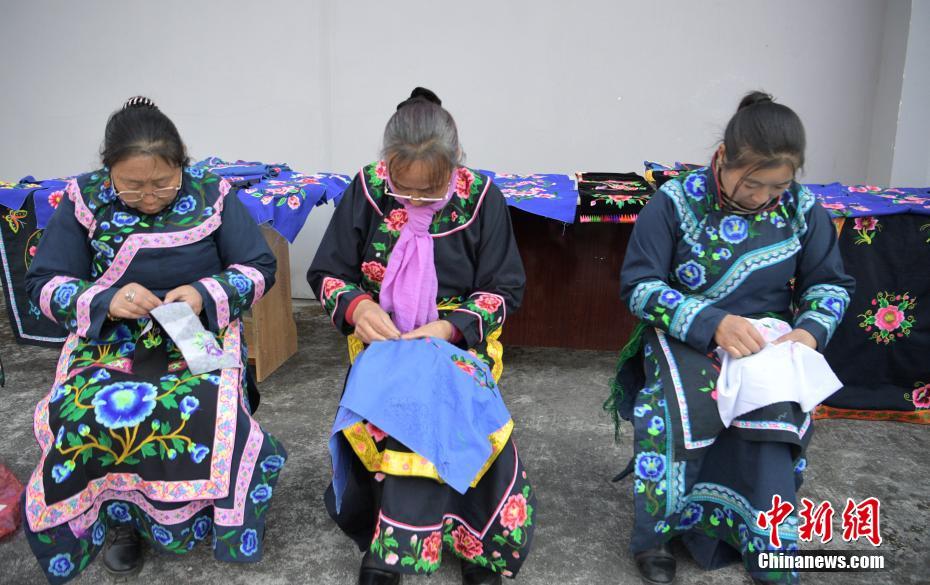 圖為1月13日,四川瀘定縣烹壩鎮(zhèn)的繡娘們正在忙碌。中新社記者 劉忠俊 攝