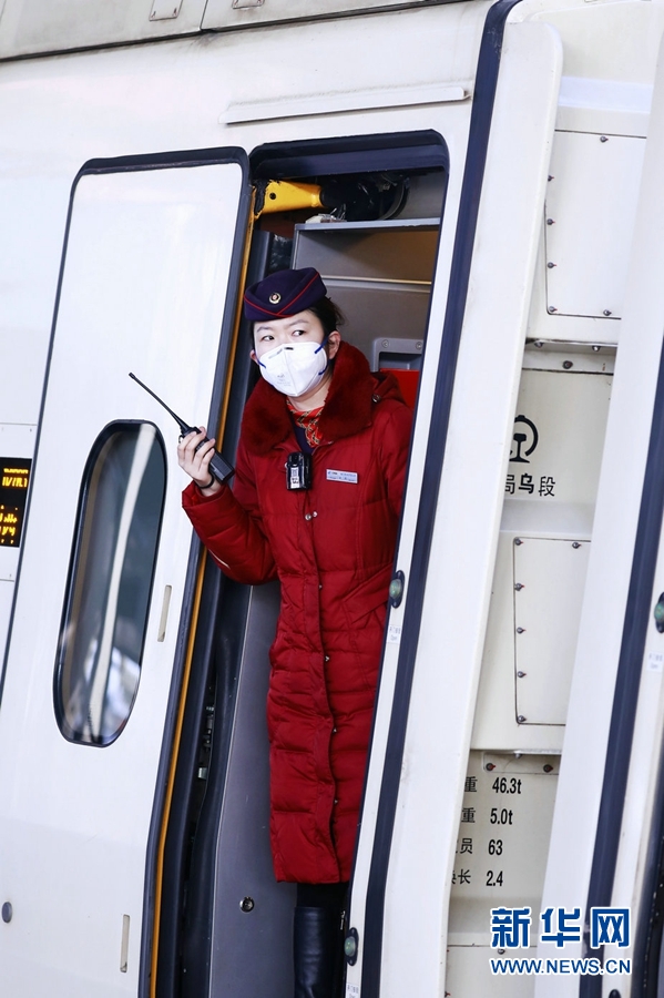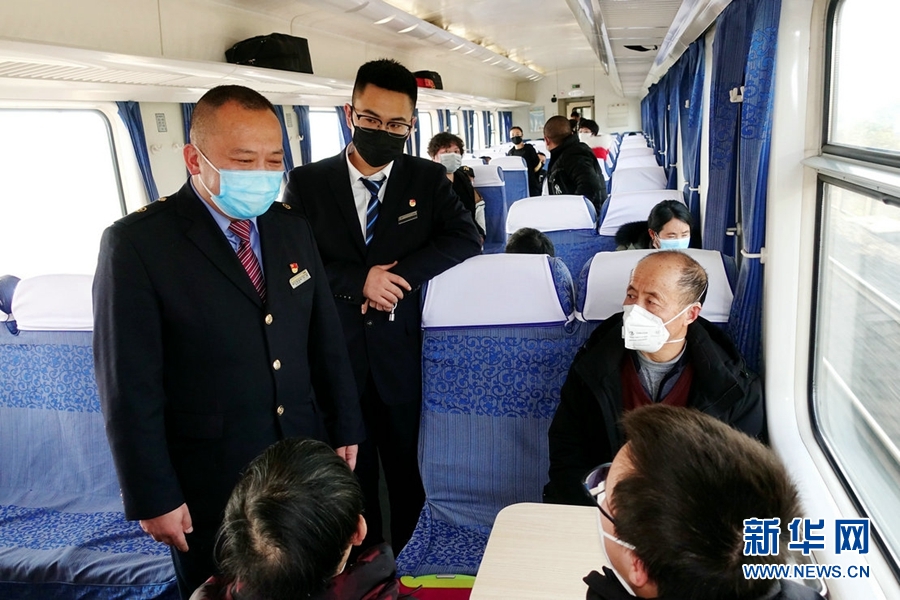 西寧客運(yùn)段成都三組乘務(wù)員為旅客宣傳防疫知識(shí)。新華網(wǎng) 郝寶君 攝