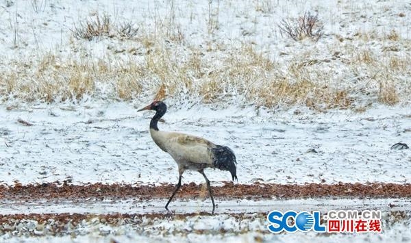 3月16日,在四川省阿壩州紅原縣安曲鎮(zhèn)的草原濕地,到處是雪茫茫的一片,從云南、貴州等地越冬歸來(lái)的一群黑頸鶴在此嬉戲覓食。它們時(shí)而逐嬉鬧,時(shí)而展翅飛翔,與周邊的牦牛、赤麻鴨相映成趣,給沉寂的高原帶來(lái)無(wú)限生機(jī)和活力。