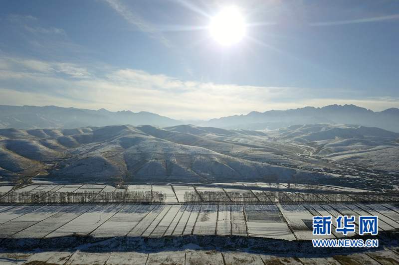 這是1月13日在甘肅省武威市天祝藏族自治縣境內拍攝的祁連山下冬日景色(無人機照片)。新華社記者 范培珅 攝