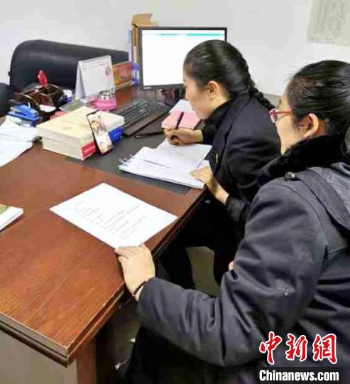 圖為甘德縣人民法院辦案人員與當(dāng)事人進(jìn)行隔空審結(jié)。甘德縣委宣傳部供圖