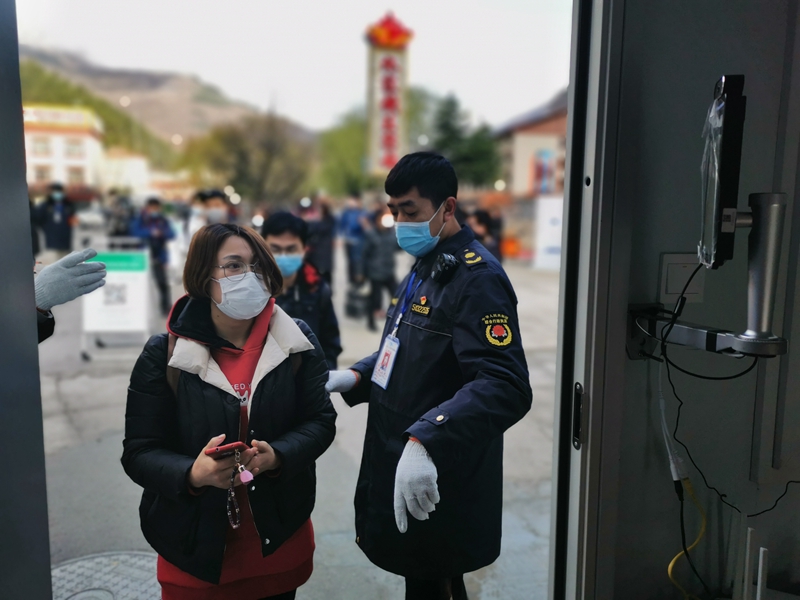 在現(xiàn)場,游客們均按照要求,間隔安全距離排隊。但與以往排隊入園不同的是,現(xiàn)場除了驗票,工作人員還會檢測體溫并檢查有無佩戴口罩。記者了解到,游客將統(tǒng)一在藍天停車場臨時游客中心乘坐觀光車進入景區(qū),且全程必須佩戴口罩,保持安全距離,并服從景區(qū)檢測點體溫檢測等。景區(qū)對未持身份證件和未按規(guī)定佩戴口罩的游客,將按照疫情防控期間相關(guān)規(guī)定,拒絕辦理入園手續(xù)。