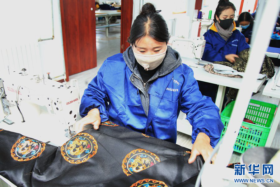 在諾布嶺民族服飾有限公司的制衣車間,藏族婦女才樣正在翻看藏袍,從衣領(lǐng)、線頭到裁剪、花紋……這里改一下,那里重新縫一下,一件合格的藏袍在出廠銷售前,必須要通過她的認(rèn)可。