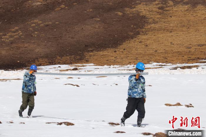 青海省玉樹藏族自治州稱多縣境內(nèi)的覺頂山山頂海拔5310米,“三區(qū)兩州”玉樹地區(qū)電網(wǎng)工程建設稱多110千伏輸變電二回線路將在這里組立一基鐵塔。4月10日,天剛蒙蒙亮,項目負責人韓建青便帶著施工隊徒步趕向位于半山腰的塔基處。積雪已經(jīng)淹沒了腳踝,一腳踩下去,能清晰的感受到冰雪觸及皮膚帶來的刺痛。“要想到達塔基處可不容易啊,看到我們背的鐵鍬了嗎,那不是挖地的,那是開路用的?!蹦杲?0歲的韓建青氣喘吁吁地說。