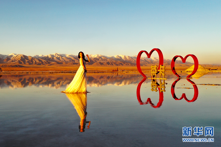 夕陽下的茶卡鹽湖。新華網(wǎng) 潘彬彬攝