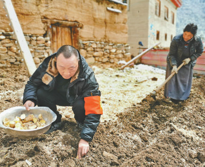 劉學燦(左)幫助農(nóng)牧民群眾種植土豆。宋豪新 攝