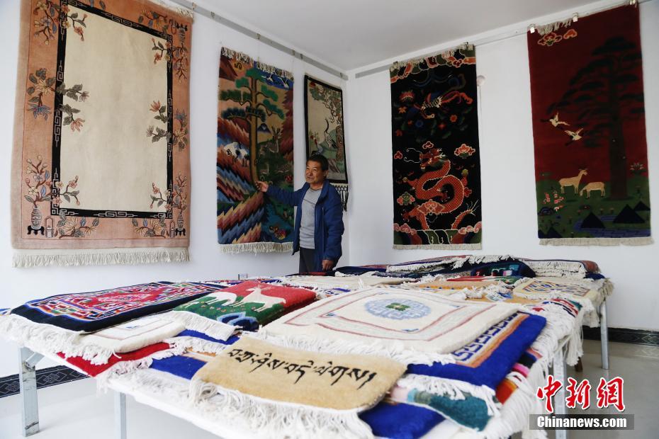 5月8日,在青海省湟中縣加牙村加牙藏族織毯技藝傳習(xí)所內(nèi),加牙藏毯第七代傳人楊永良展示制作精美的藏毯。楊永良介紹,加牙村有著300多年的織毯歷史,加牙藏毯色澤艷麗不褪色,質(zhì)地堅(jiān)硬而富有彈性,可以使用近200年。獨(dú)特的編制技法及濃郁的民族特色使加牙藏毯受到眾多國(guó)內(nèi)外藏毯愛(ài)好者的喜愛(ài)。中新社記者 馬銘言 攝