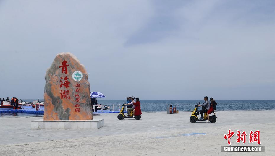 5月19日,游客騎著電動(dòng)車在青海湖二郎劍景區(qū)內(nèi)游玩。當(dāng)日是中國(guó)旅游日,游客在青海省海南藏族自治州青海湖二郎劍景區(qū)內(nèi)觀湖、與水鳥(niǎo)互動(dòng)、感受初夏青海湖的海天一色之美。中新社記者 馬銘言 攝