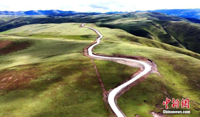 村民口中的“尚藍天路”,是一條連接四川阿壩藏族羌族自治州壤塘縣上杜柯鄉(xiāng)和南達木鎮(zhèn),途經(jīng)吾克基村、阿斯瑪村、三郎村的鄉(xiāng)道。這條海拔3000米以上、總長近40公里的水泥公路,劃破長滿青草的山脊,奮力向遠方延伸。