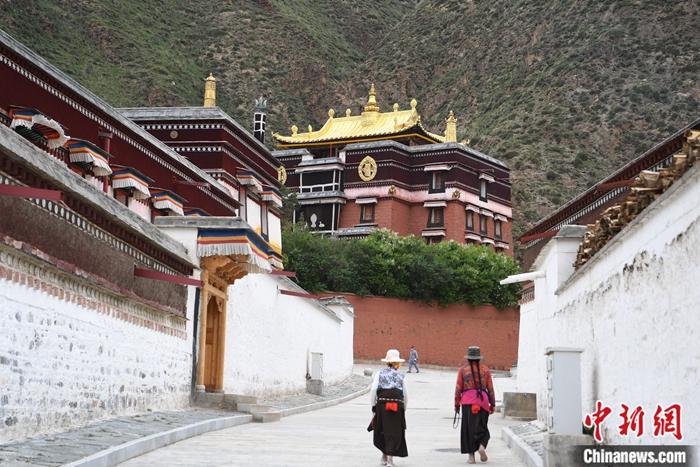 “世界藏學(xué)府”拉卜楞寺,經(jīng)過8年系統(tǒng)修繕后“轉(zhuǎn)危為安”。圖為六月中旬拍攝的拉卜楞寺。 中新社記者 楊艷敏 攝