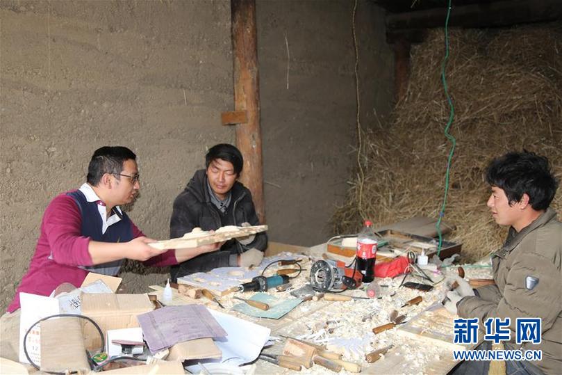 扎西才讓(左)與村里的木匠探討木工產(chǎn)業(yè)發(fā)展(4月4日攝)。東宮村即將招募村內(nèi)愿意學(xué)習(xí)木工的青年,開辦木工培訓(xùn)班,讓更多人掌握一門手藝。新華社發(fā)(張顥 攝)