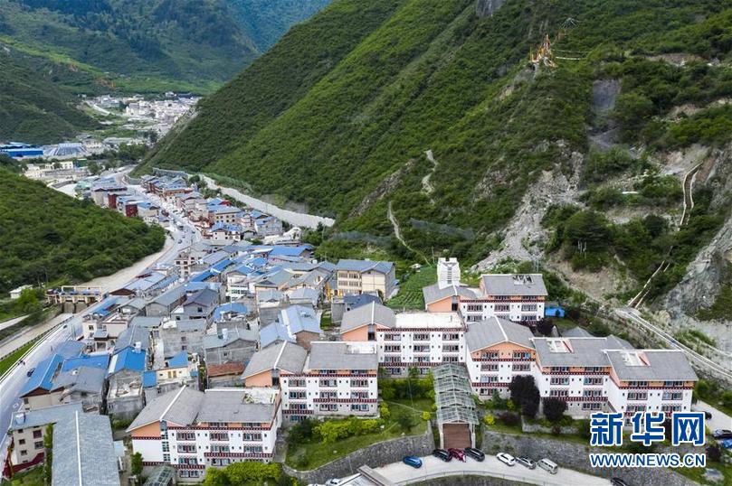 九寨溝地震震中九寨溝縣漳扎鎮(zhèn)新貌(無(wú)人機(jī)照片,6月18日攝)。新華社記者 劉坤 攝