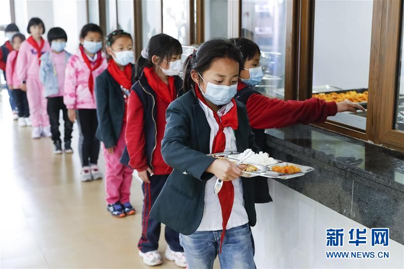 四川省阿壩藏族羌族自治州九寨溝縣九寨溝小學(xué)(原漳扎鎮(zhèn)小學(xué))的學(xué)生在食堂排隊(duì)打飯(6月18日攝)。 新華社記者 沈伯韓 攝