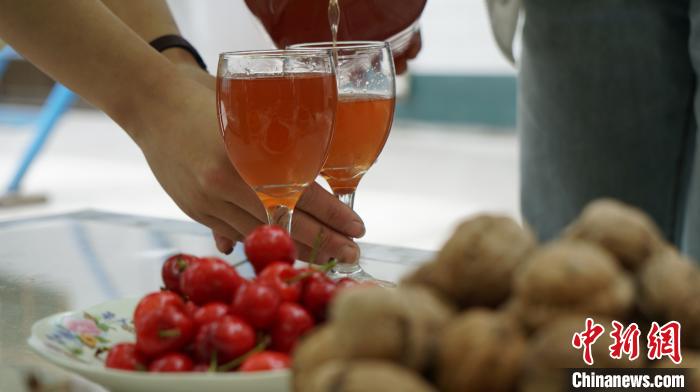 圖為當(dāng)?shù)剞r(nóng)家自釀的葡萄酒?!∥航ㄜ?攝