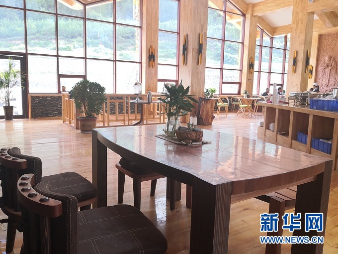 傍晚時分走進高吉村,錯落有致的民宿散落山間,落地窗透出暖黃色的燈光。房間里藏式床鋪與原生態(tài)家具相映成趣,靠窗的榻上擺放著茶幾、茶具、綠植,一覽無余的窗外夕陽半落、云飛鳥散。游客接待中心也一改傳統(tǒng)樣式,樓上是純木質、開放式餐廳,樓下是小橋流水、曲徑通幽的水景,游客們三三兩兩的喝著咖啡,享受著詩意的人生。