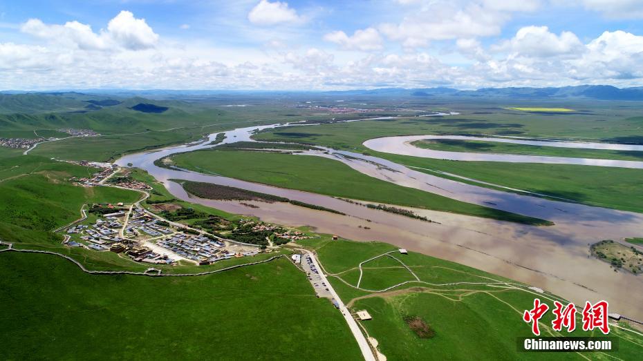 黃河九曲第一灣位于四川省阿壩藏族羌族自治州若爾蓋縣唐克鎮(zhèn),此處是四川、青海、甘肅三省交界處,黃河水在這里形成一個(gè)巨大的回灣,被稱為黃河九曲第一灣。黃河和白河將這里的草原分割成無數(shù)河州、小島,水鳥翔集,澄河蜿蜒曲折,清澈的河流水勢平緩,藍(lán)天白云,綠草繁花,帳篷炊煙,牛羊駿馬,盤旋的雄鷹,如詩如畫,氣象萬千。