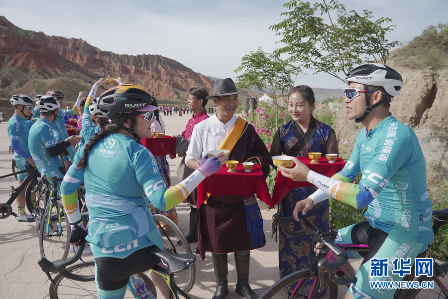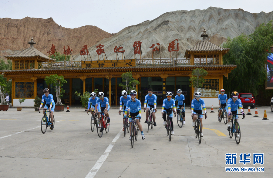 圖為“挑戰(zhàn)2020”環(huán)湖精英行“網(wǎng)紅”團(tuán)隊(duì)在貴德國家地質(zhì)公園準(zhǔn)備騎行。新華網(wǎng) 魚昊 攝