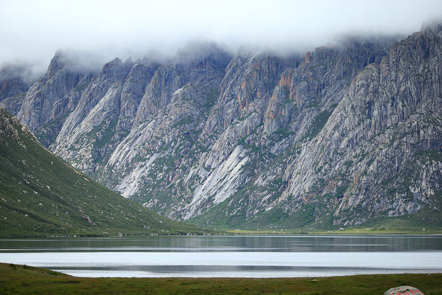 站在年保玉則的湖畔,湖面幽藍(lán)深邃像是一面鏡子,時間仿佛在這一刻都停止了,寧靜和心靜。望向遠(yuǎn)處,山峰疊巒直插縹緲的白云中;看向身旁,五顏六色的小花鋪滿了湖岸,牦牛低頭飲著湖水,成群的裸鯉游走在湖邊,這是生命的動靜。