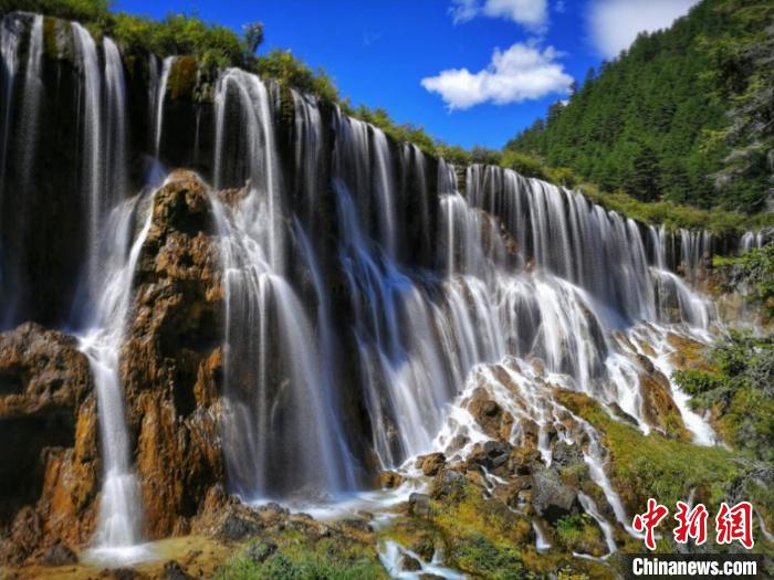 九寨溝諾日朗瀑布再現(xiàn)往昔壯觀美景。(中國(guó)地震局公共服務(wù)司、四川省地震局 供圖)
