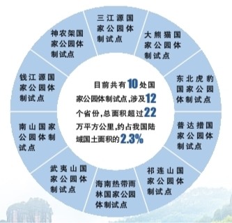 自2015年以來,我國開展了東北虎豹、祁連山、大熊貓、三江源、海南熱帶雨林、武夷山、神農(nóng)架、普達(dá)措、錢江源、南山等10處國家公園體制試點。試點區(qū)將各級各類自然保護(hù)地整合劃入國家公園試點區(qū)范圍,對山水林田湖草等自然生態(tài)系統(tǒng)實行統(tǒng)一管理、整體保護(hù)和系統(tǒng)修復(fù)。