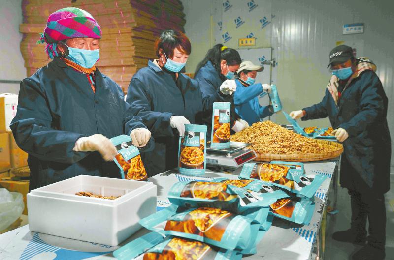 在涼山州木里縣藏祥閣農(nóng)特產(chǎn)品商貿(mào)有限公司,工人們正在熟練地為核桃裝袋。近年來(lái),通過(guò)電商銷售,木里的農(nóng)特產(chǎn)品成為網(wǎng)上暢銷商品,既為農(nóng)民脫貧、增收開(kāi)拓了新路,又滿足了現(xiàn)代人對(duì)農(nóng)村原生態(tài)農(nóng)產(chǎn)品的消費(fèi)需求。尹鋼 攝(資料圖片)