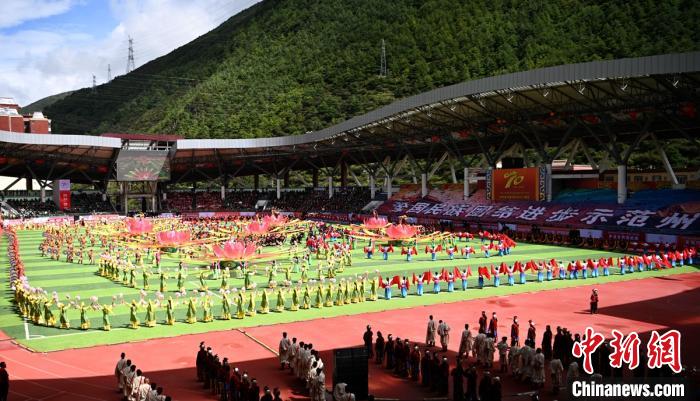 四川甘孜藏族自治州建州70周年慶祝大會17日在康定市舉行。 劉忠俊 攝