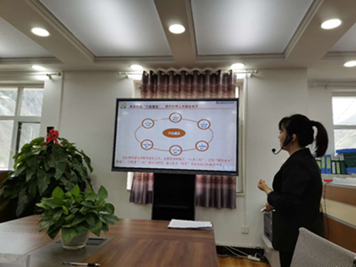 曲庫(kù)乎鄉(xiāng)黨委副書記馬曉蕓向記者介紹黨建工作開(kāi)展情況。人民網(wǎng) 吳兆飛 攝