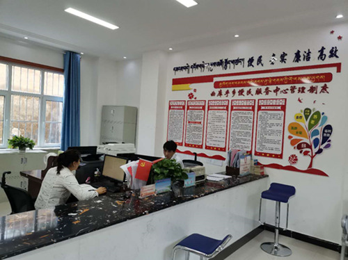 曲庫(kù)乎鄉(xiāng)便民服務(wù)中心工作人員正在開(kāi)展工作。人民網(wǎng) 吳兆飛 攝