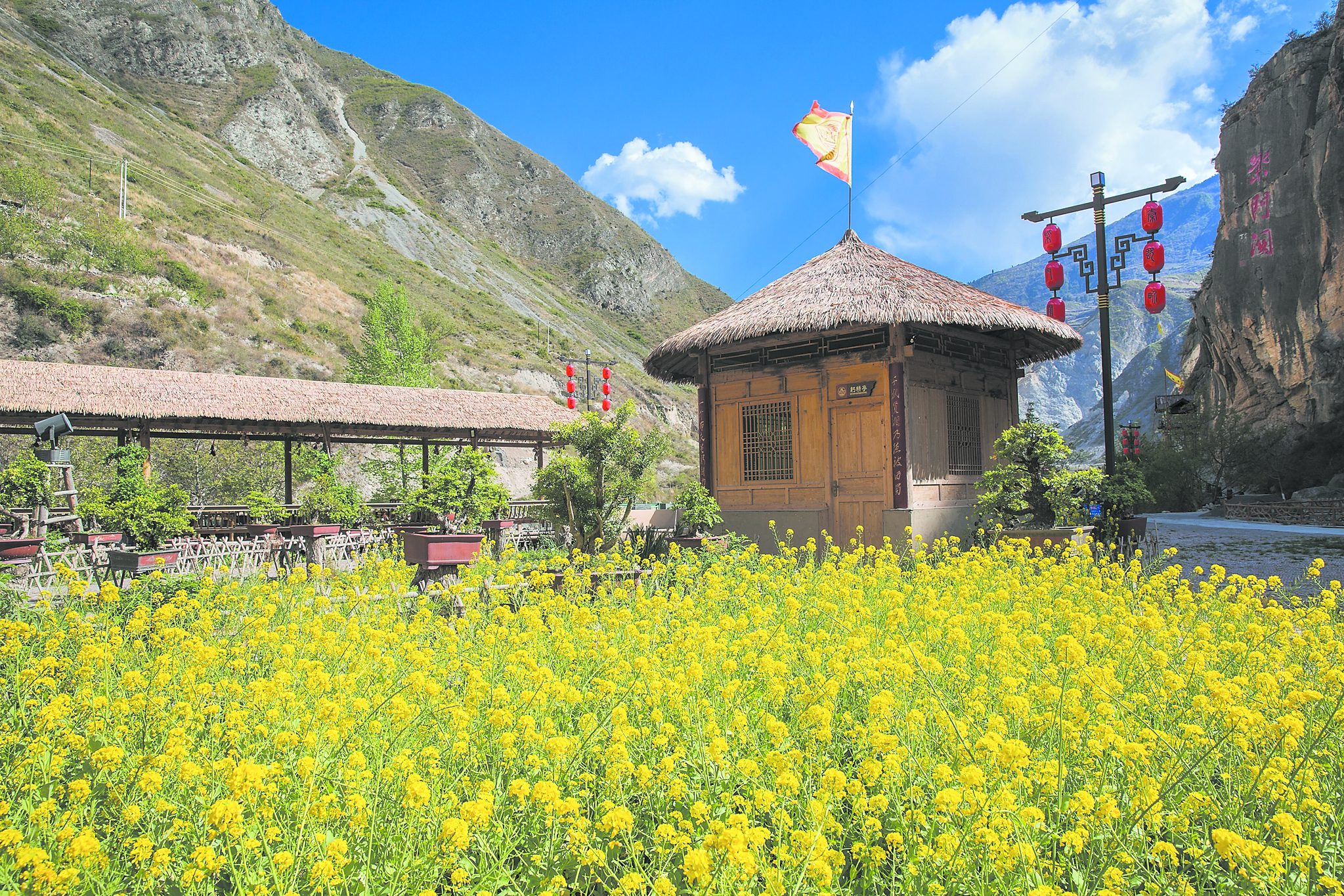 “原來(lái)家家戶(hù)戶(hù)都是旱廁,現(xiàn)在都是沖水馬桶,村道邊的豬圈改成停車(chē)場(chǎng),河灘地修建起游客中心,村容村貌煥然一新?!惫l(xiāng)副鄉(xiāng)長(zhǎng)劉啟明說(shuō)起青龍村的變化,感慨萬(wàn)千。青龍村定位打造邊關(guān)軍事文化鄉(xiāng)村旅游,隨即,三國(guó)文化元素植入,恢復(fù)重建秦蜀交界的角樓,豐富的歷史沉淀喚醒了這座沉睡的山村。