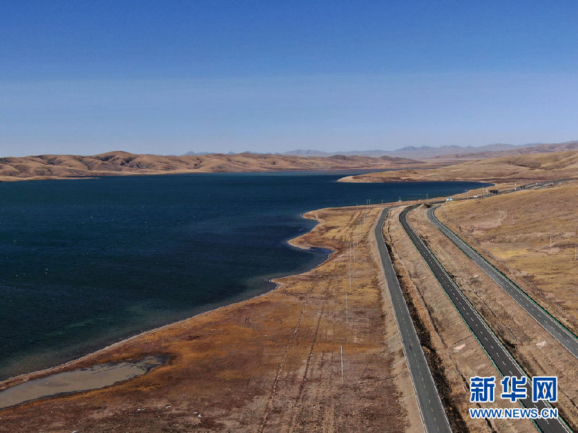 10月30日在青海省果洛藏族自治州瑪多縣境內(nèi)拍攝的一處湖泊(無人機照片)。新華社記者 張龍 攝