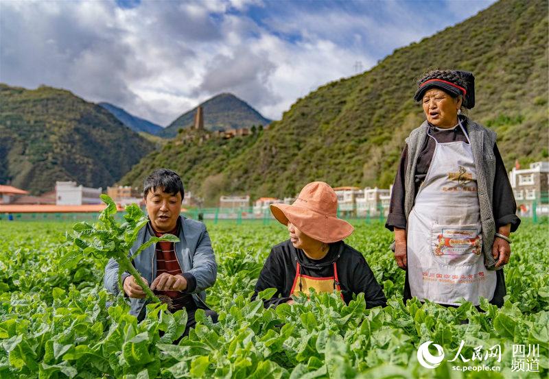 安開(kāi)紅從小在低海拔地區(qū)生活,10年前,為了照顧老人,他隨妻子回到松崗村,開(kāi)始自己的創(chuàng)業(yè)路?!霸诟咴N植蔬菜,不僅長(zhǎng)勢(shì)慢,而且一定要掌握好蔬菜的生長(zhǎng)規(guī)律,不然,就會(huì)虧本?!卑查_(kāi)紅說(shuō),自己從開(kāi)始的不會(huì),慢慢摸索,不斷總結(jié),到后來(lái)大膽用高價(jià)流轉(zhuǎn)村里多余的土地。勤學(xué)習(xí)、善總結(jié)讓安開(kāi)紅成了行業(yè)專家,連續(xù)三年被阿壩州評(píng)為農(nóng)民科技種植能手,并對(duì)全州區(qū)縣進(jìn)行實(shí)地傳授種植技術(shù)。