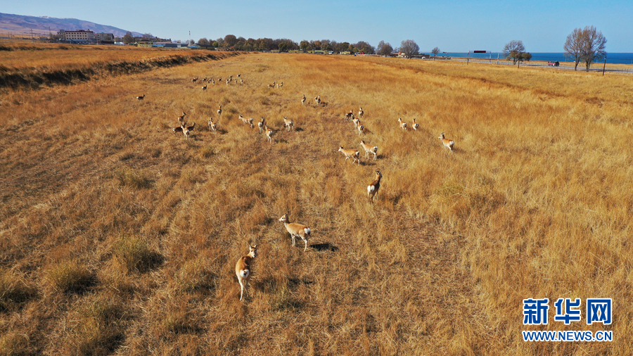 11月20日,一群普氏原羚在青海湖普氏原羚特護區(qū)內(nèi)活動。新華網(wǎng) 潘彬彬 攝