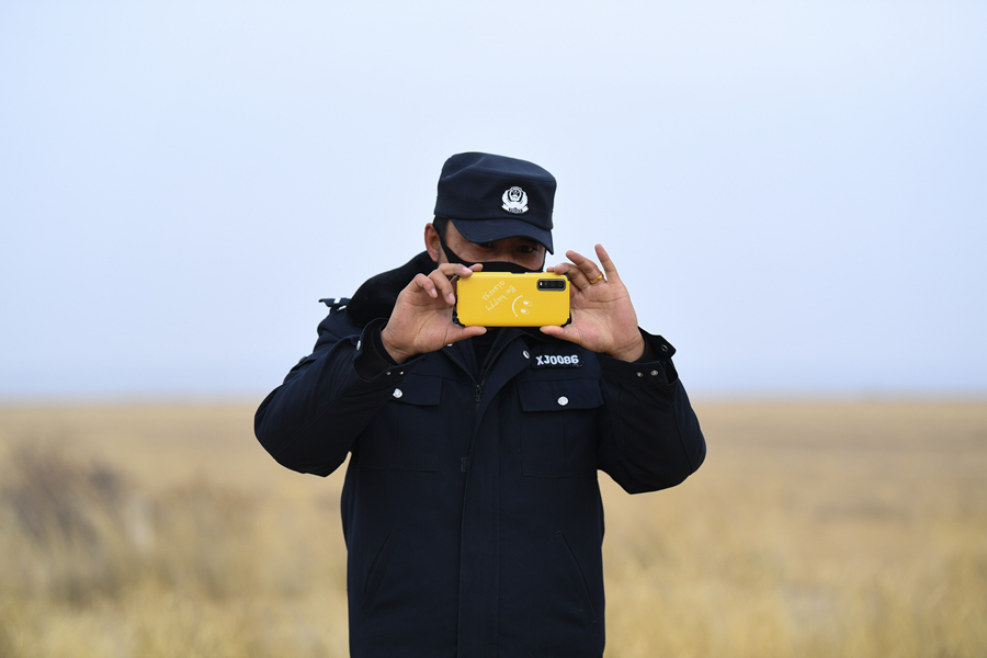 11月20日,剛察縣森林公安局哈爾蓋派出所民警秦輝武(右一)和輔警東知布在特護區(qū)內(nèi)進行日常巡護。新華網(wǎng) 潘彬彬 攝