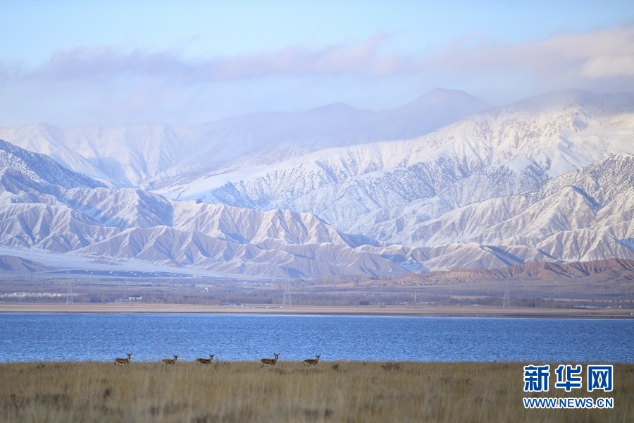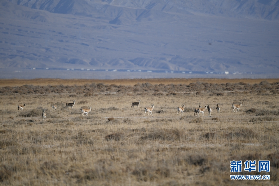 一群鵝喉羚在都蘭湖國(guó)家濕地公園內(nèi)活動(dòng)。(11月21日攝)新華網(wǎng) 潘彬彬 攝