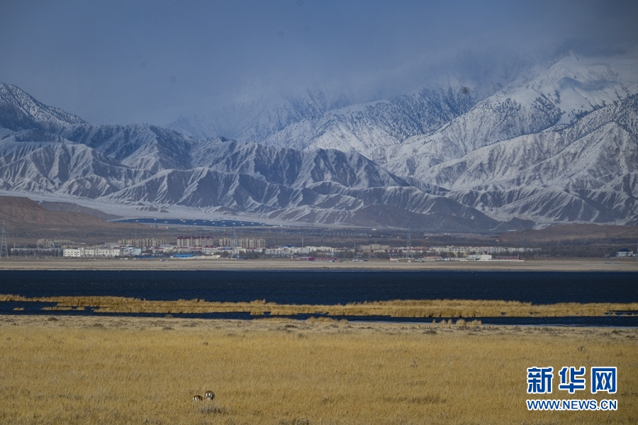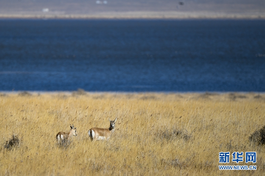 在都蘭湖國(guó)家濕地公園內(nèi)拍攝到的鵝喉羚。(11月21日攝)新華網(wǎng) 潘彬彬 攝