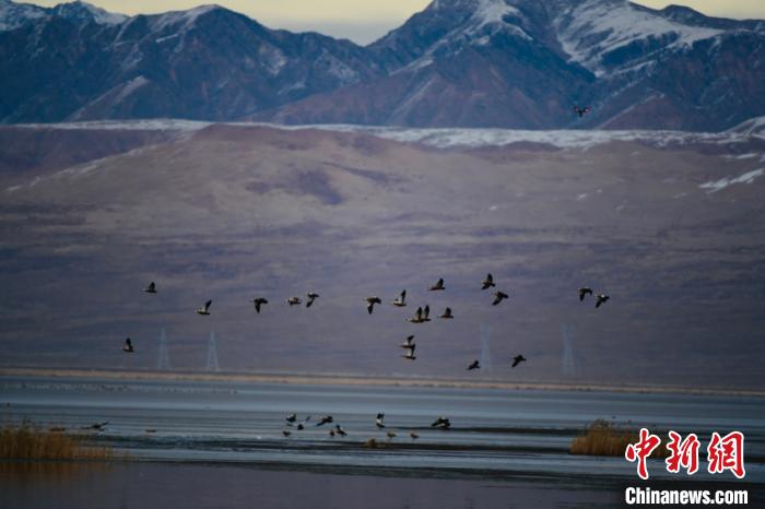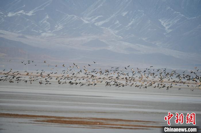 青海柴達(dá)木盆地都蘭湖國(guó)家濕地公園引數(shù)萬(wàn)只野生鳥類越冬