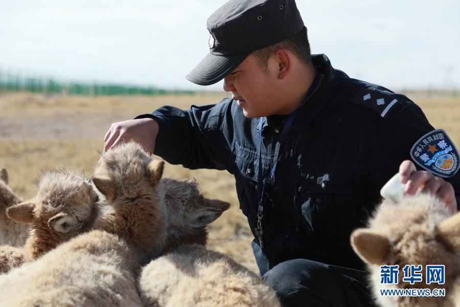 12月7日,可可西里巡山隊員達(dá)才在給藏羚羊幼仔喂奶。新華社記者 藍(lán)翔 攝