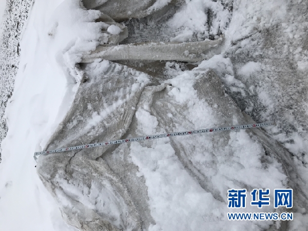 王飛騰團(tuán)隊(duì)發(fā)現(xiàn),“蓋被子”區(qū)域的冰體消融速度減緩?!啊w被子’的地方比不‘蓋被子’的地方冰的厚度高了一米,這高出來的一米就是‘蓋被子’的效果。”王飛騰介紹。