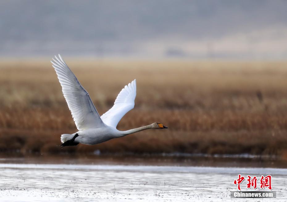 振翅高飛的大天鵝。安源 攝