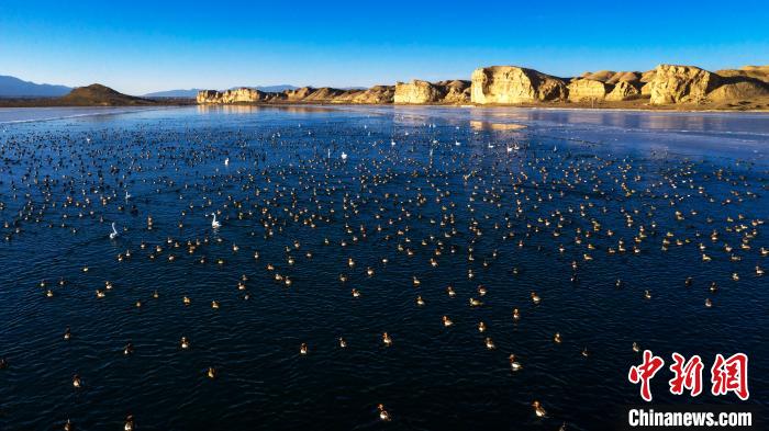 2021年2月2日是第25個“世界濕地日”,地處柴達木盆地的可魯克湖-托素湖濕地自然保護區(qū)也引來了萬鳥棲息的壯觀奇景。從可魯克至托素湖的河道到托素湖入水口處,放眼望去,萬鳥棲息,美麗的天鵝如鶴立雞群,點綴著湖面。同時近萬只赤嘴潛鴨等野生鳥類也在此棲息??靵碜鎳熬蹖毰琛笨带B呀。