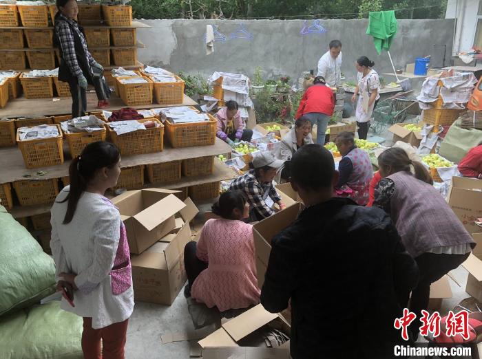 小金縣村民正在打包小金蘋(píng)果。張俊磊攝
