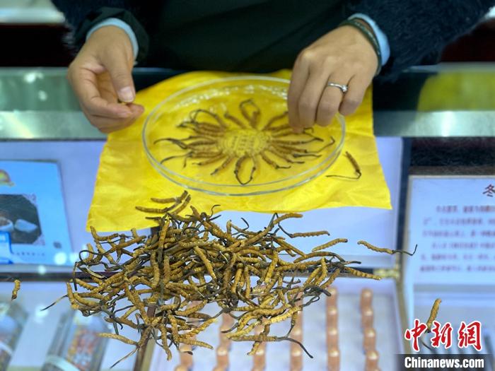 圖為西寧市某商鋪銷售人員正在整理冬蟲夏草。 中新社記者 孫睿 攝